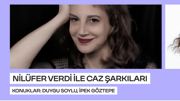 Caz sahnesinin değerli piyanistlerinden Nilüfer Verdi, Caz Şarkıları projesiyle vokallerde önemli isimleri konuk ediyor. Parçaların hikayeleri ve özel vokal performanslarına tanıklık edeceğimiz gecenin konukları Duygu Soylu ve İpek Göztepe. Standartların yanı sıra sürpriz uyarlamaların yer alacağı konseri kaçırmayın.